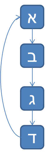 Similarly he continues to connect the third(ג) thing to a forth thing(ד). Afterwards he will usually connect all four things together, since at first the first thing is only connected to the fourth through its connection to the second and the second with the third but there is no connection from the first directly to the fourth. So he will then connect the fourth thing to the second directly using a pussuk or chazal or some other proof so all these four things will now be attached much stronger.